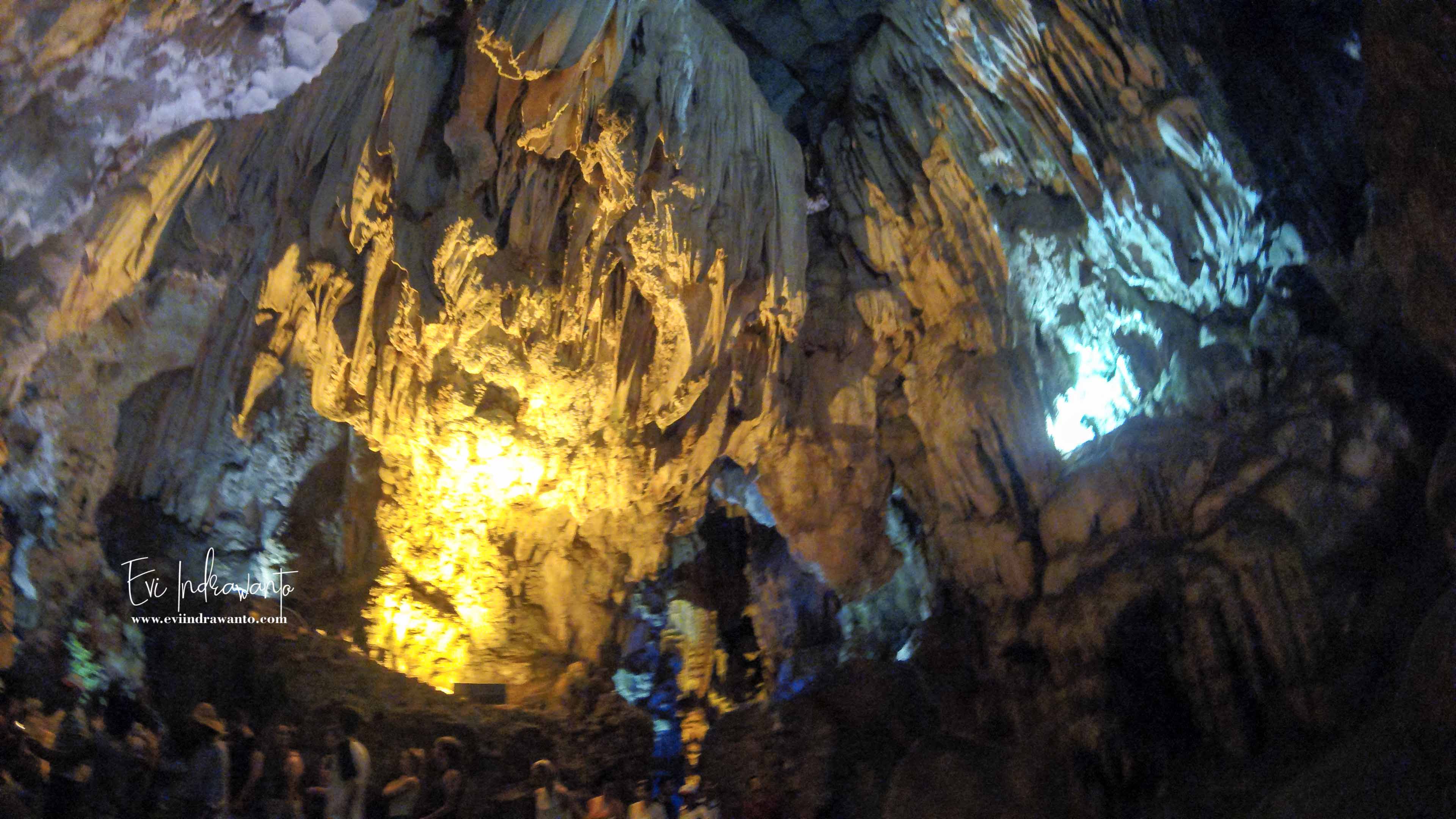 Gua bawah tanah ini kian menarik karena dipasangi lampu warna-warni. Ditemukan pertama kali oleh orang Perancis tahun 1901. Terdiri dari dua gua. Ruang pertama dari Gua Sung Sot dikenal sebagai Ruang Tunggu dengan tinggi sekitar 30 meter. Untuk sampai ke Ruang Tunggu Kita perlu menuruni 10 anak tangga dari mulut gua. Dinding gua yang bercorak akibat terkikis oleh alam dan bentuknya persegi membawa kita ke pintu masuk ruang kedua. Jalan penghubung kedua gua tersebut relatif sempit. Di sini lebih besar. Tak habis takjub memandangi stalagmit, stalaktit, dan kolom yang terbentuk selama jutaan tahun.