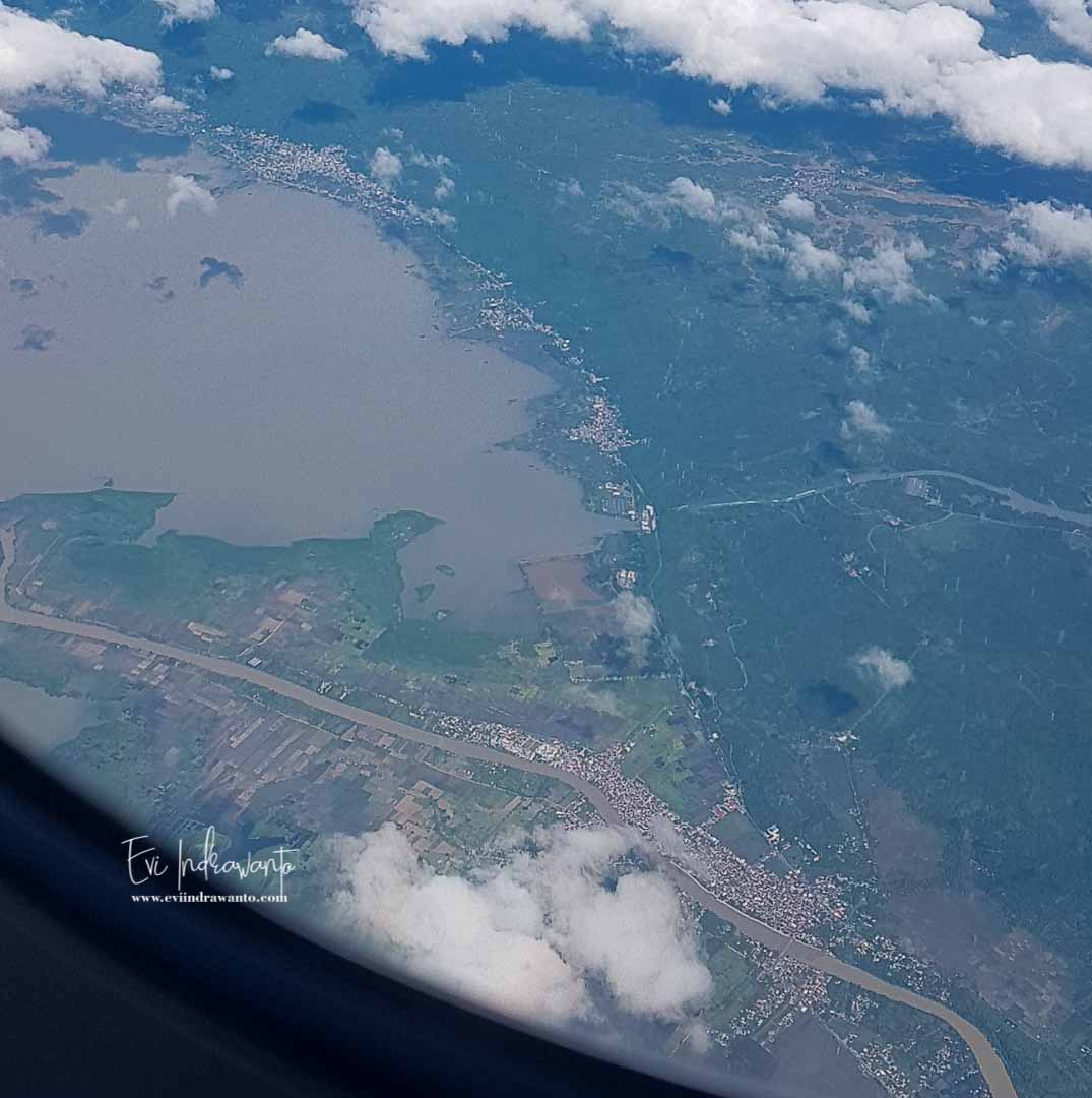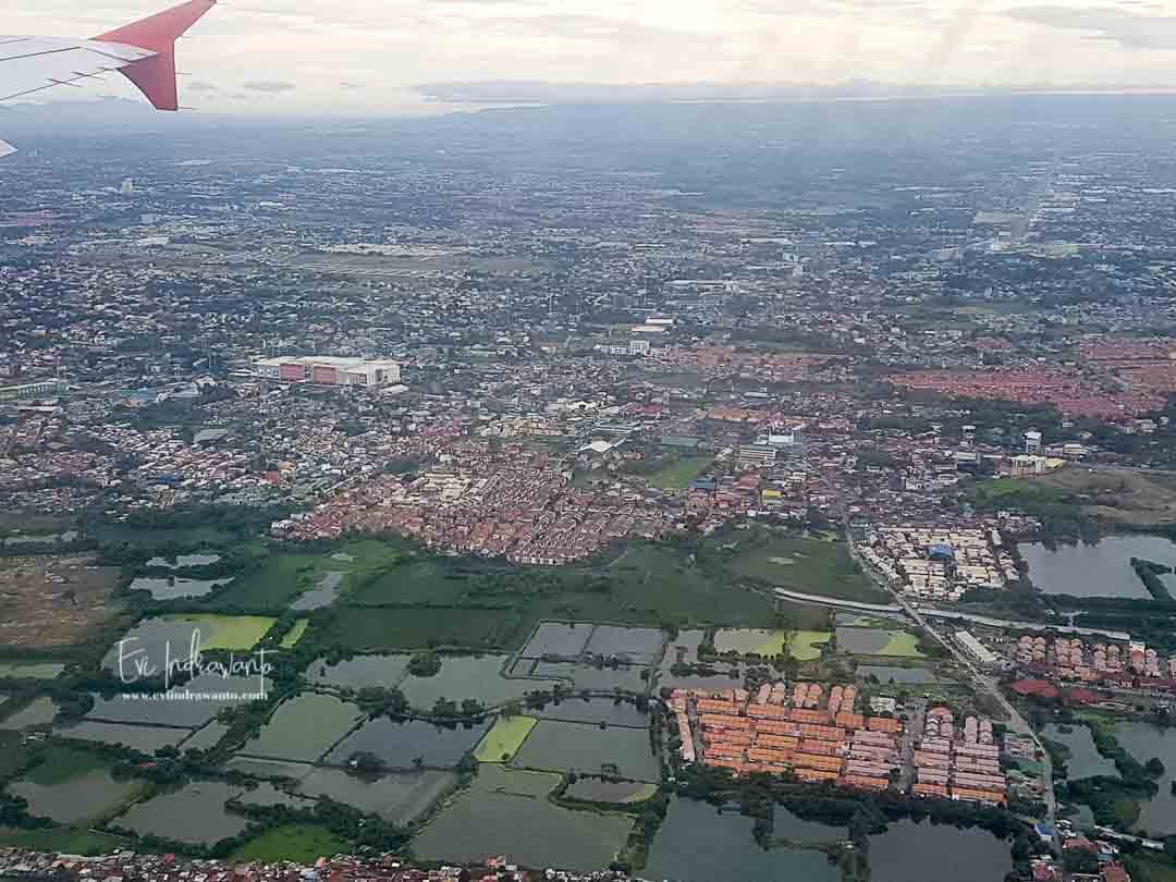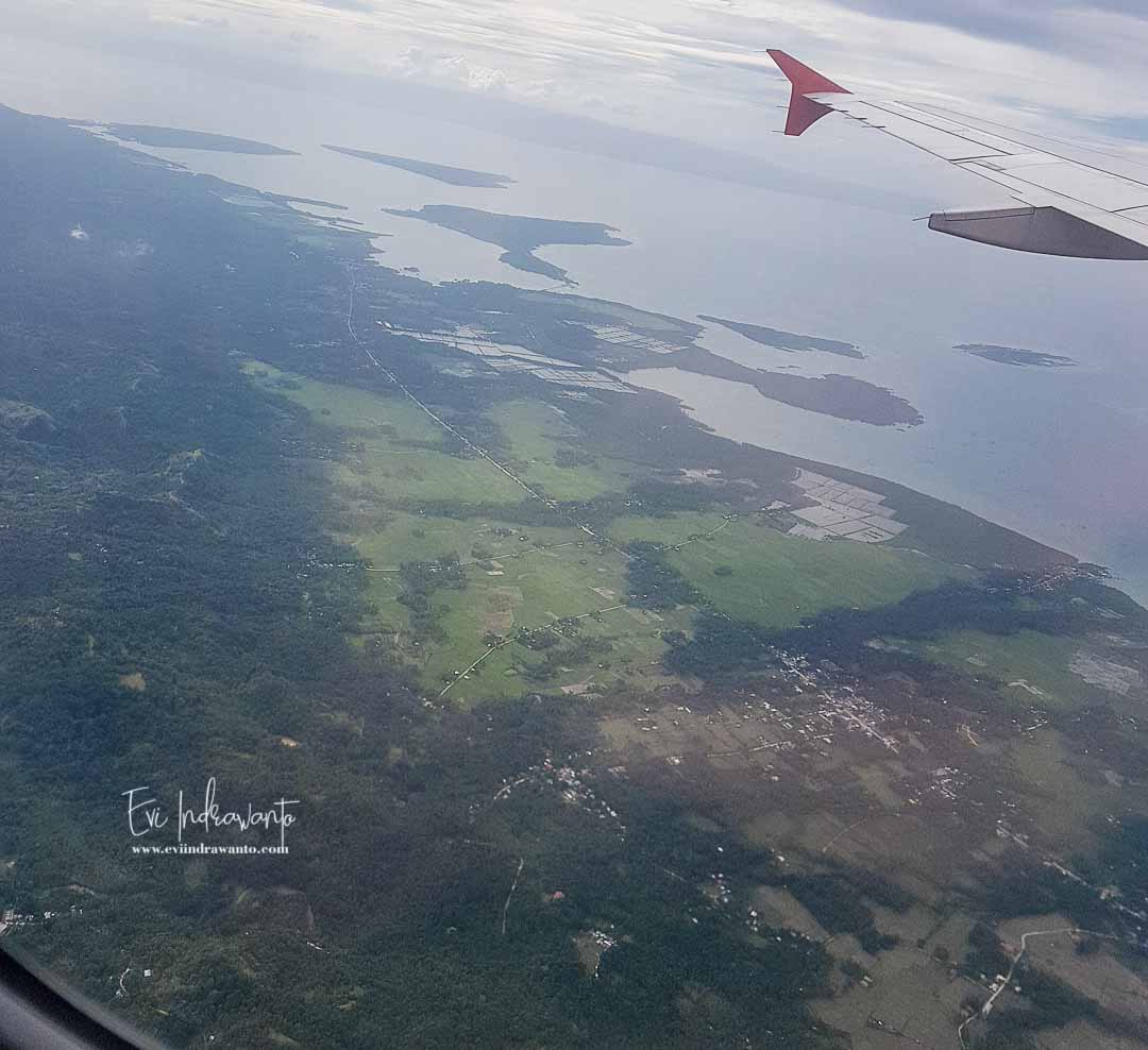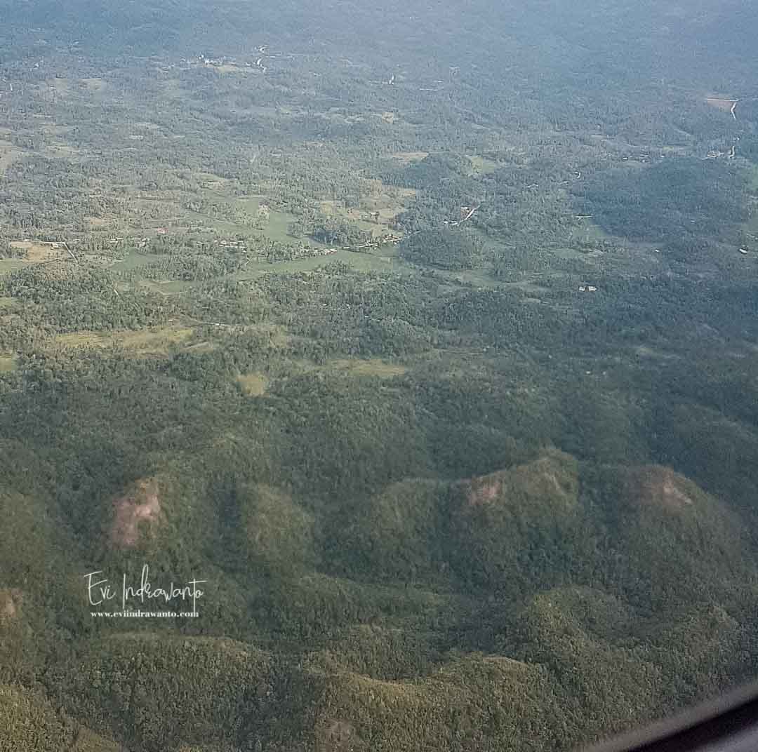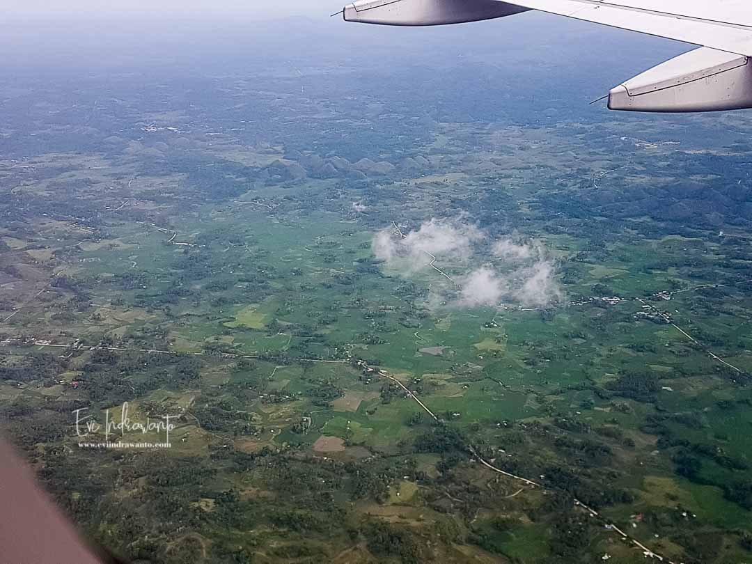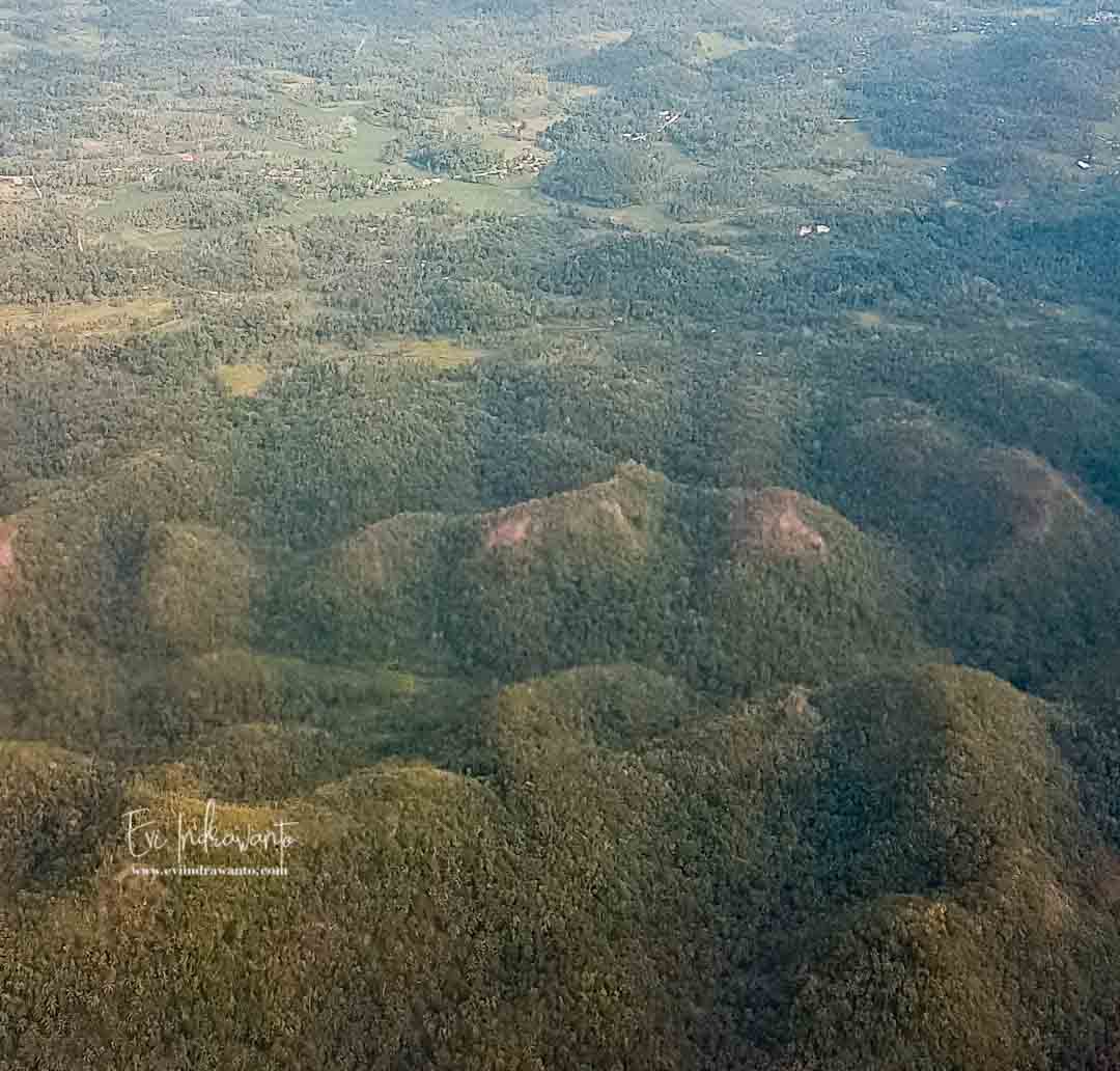 Mendekati Pulau Bohol di mana Tagbilaran terletak, saya terhibur oleh bentang alam yang unik. Banyak tonjolan bukit seperti Chocolate Hills (dalam posting lain nanti akan saya ceritakan tentang Chocolate Hills). Dari udara tonjolan-tonjolan bukit, berbentuk gundukan kerucut yang simetris, mirip rumah tradisional suku Dani di Papua. Berserakan di lanskap yang hijau. Inilah daya tarik Bohol yang tak sembarang negara punya. Daya tarik yang membuat turis datang berduyun-duyun untuk melihatnya dari dekat.
